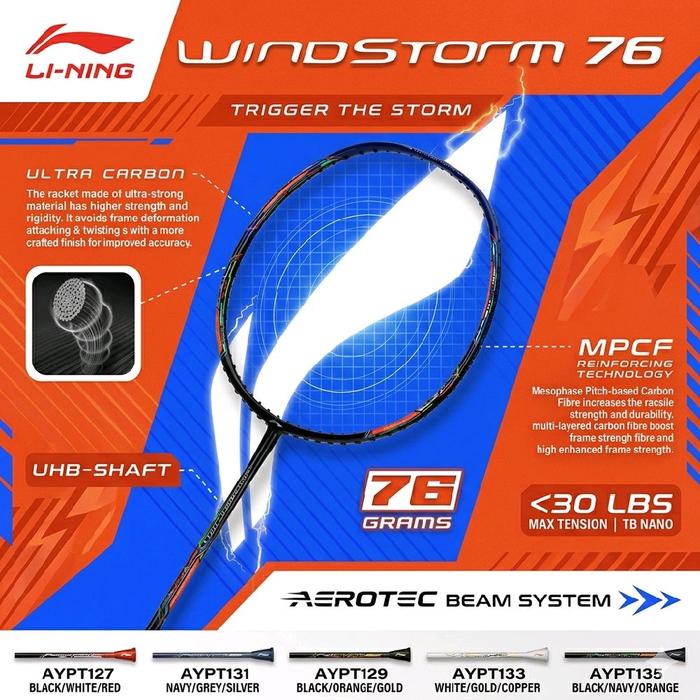 Li-Ning team combined Windstorm 76 with the finest advanced racket technologies into one elegant, super-light package: