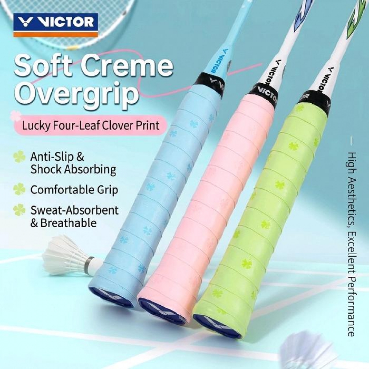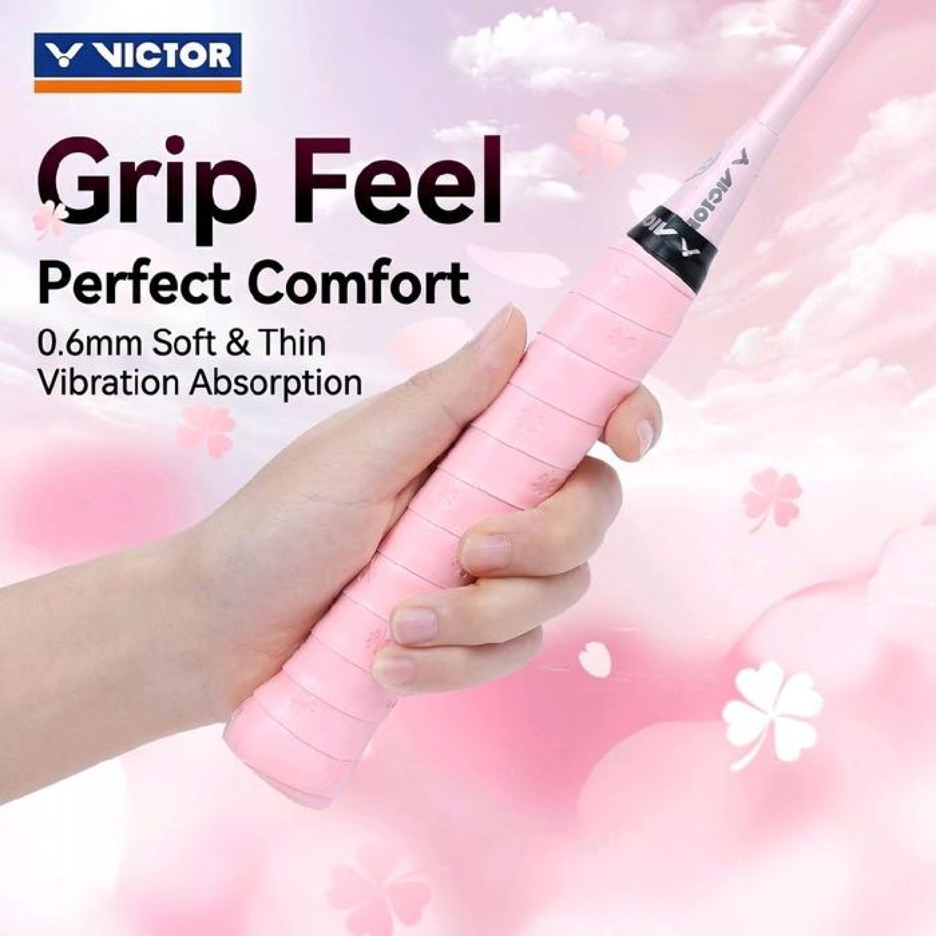 VICTOR GR262 Clover Overgrip - 0.6mm Ultra-Thin, Tacky & Comfortable - Lucky Four-Leaf Clover Pattern Tingkatkan Permainan Anda Dengan ...