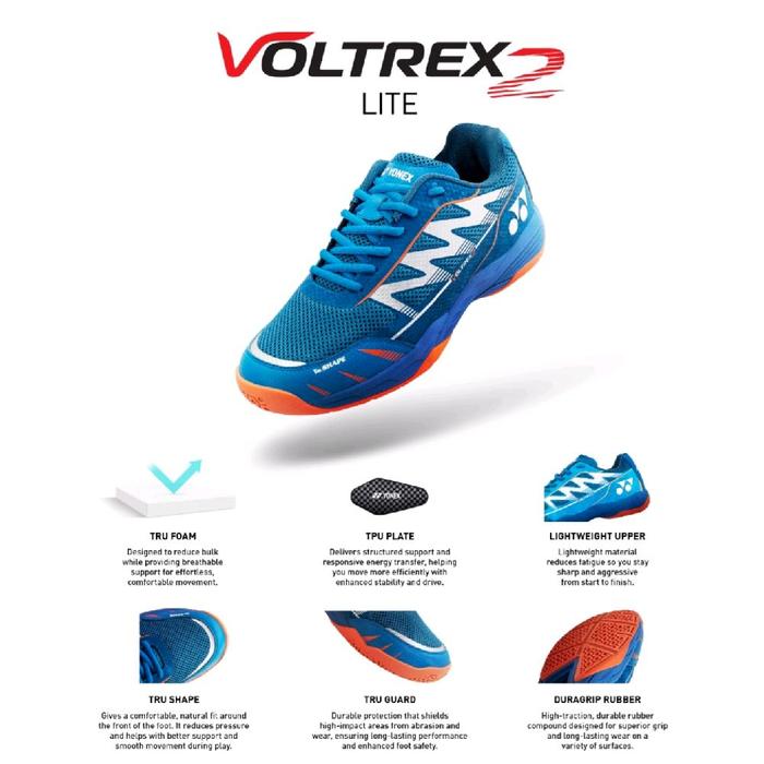 YONEX VOLTREX 2 LITE dirancang khusus dengan struktur super ringan untuk membantu mengurangi kelelahan, menjaga kecepatan refleks kaki, dan mendukung gaya permainan agresif Anda dari set pertama hingga match point. Sepatu ini adalah pilihan tepat bagi pemain yang mengandalkan kelincahan dan daya tahan di lapangan!