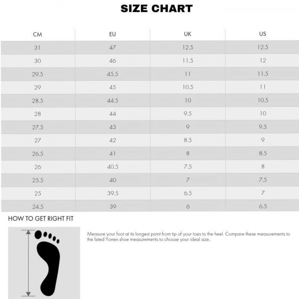Size 44 = 28 cm